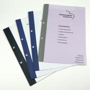 ![]() | Thermobindung alles von der universell einsetzbaren Thermomappe mit transparenter Vorderseite bis zur individuell gestalteten, bedruckten Mappe | |